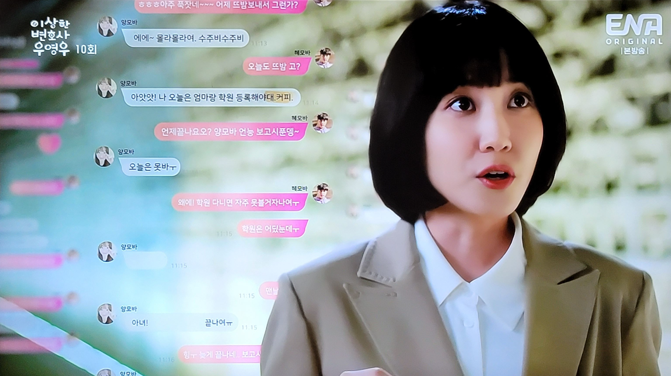 이상한 변호사 우영우가 드디어 중반인 10회를 넘겼다. 이번에는 특히 생각해보고 돌아봐야 할 내용들을 많이 다루었다. 지적 장애인의 사랑과 준호와 영우의 "좋아한다"란 고백 후 데이트 과정에서의 키스신, 영우가 어떻게 자랐는지 궁금해서 영우 아버지를 찾아온 줄 알았던 태수미의 의도 등등 잠시라도 눈을 떼지 못하게 하는 몰입감이 최고였다.